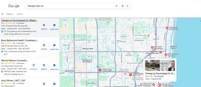 Within four months, the Google My Business listing achieved a top-three ranking in Google’s local pack for “Therapists in Boca Raton.” The website’s organic traffic increased by 112%, and appointment requests surged by 75%. Additionally, the optimized GMB profile generated a 42% increase in phone calls and direct inquiries from local search users. The organic social and content campaign contributed to a 30% increase in website engagement and helped solidify the therapist’s brand as a trusted local provider.